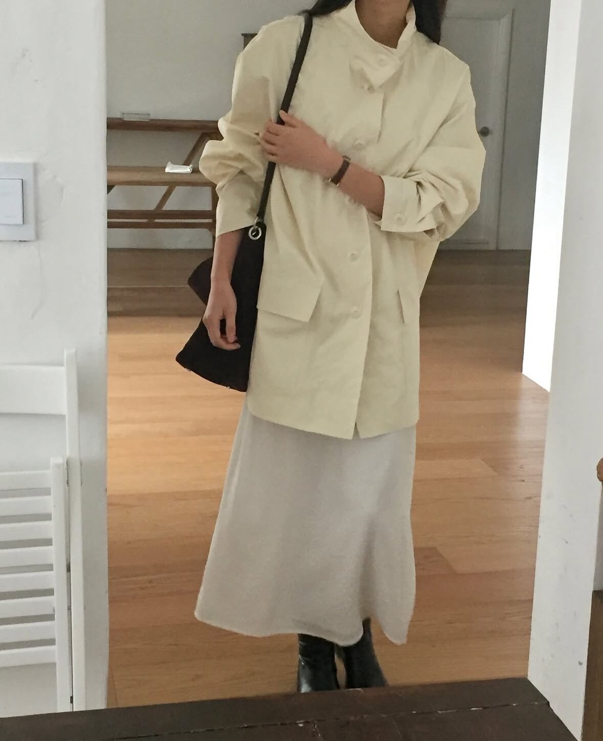 オーバーサイズのつくりなので中に厚手のニットを着込むことも可能です。