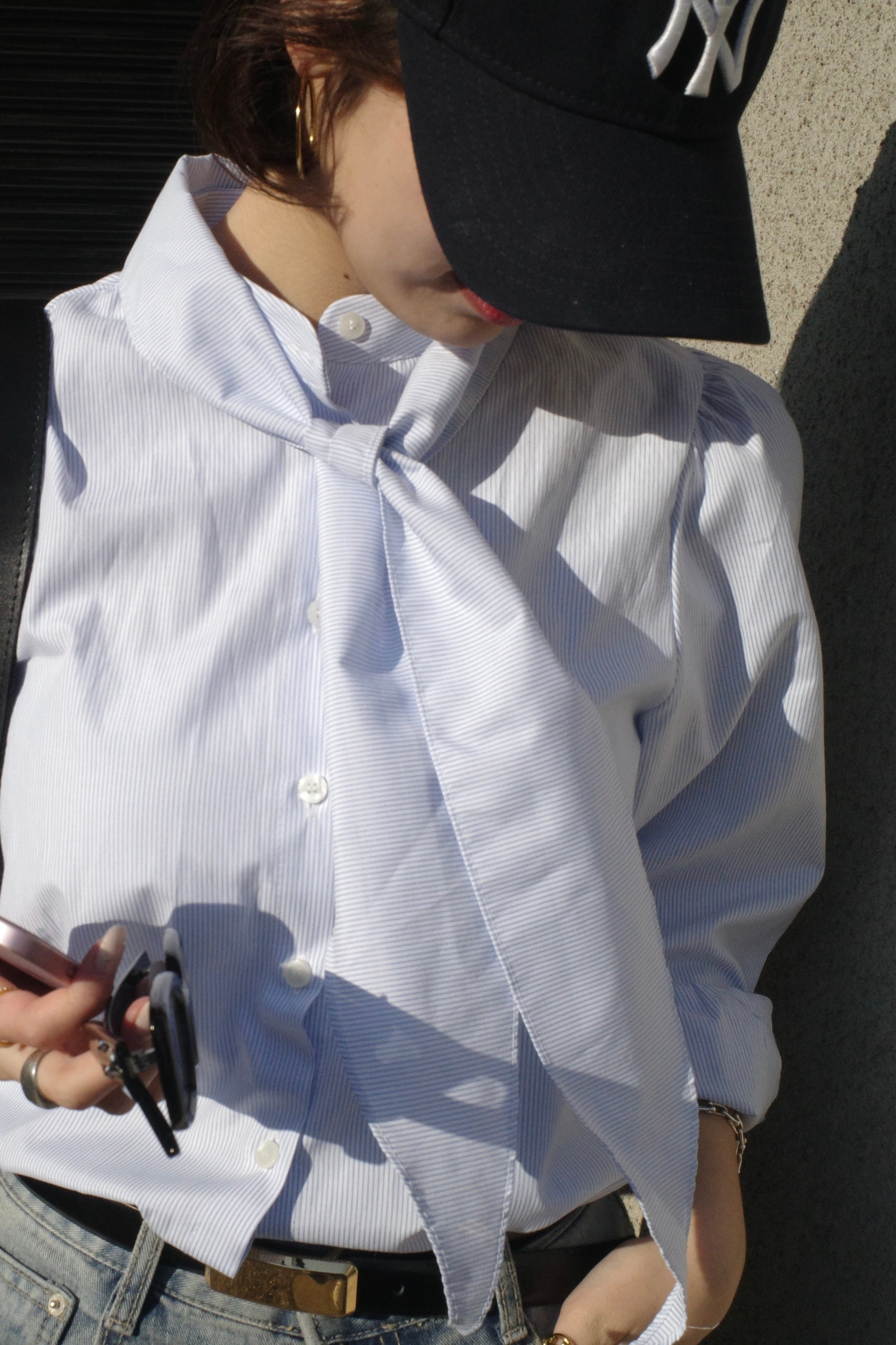 blue bow blouse